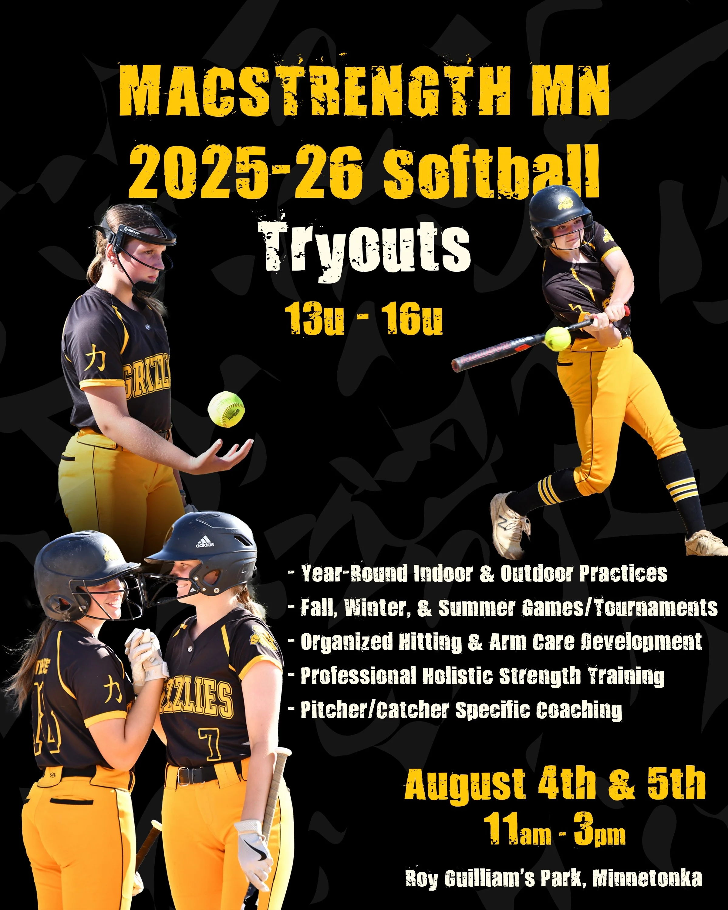 MacStrength’s Grizzlies Fastpitch Program is changing softball in the Midwest. Our staff is dedicated to teaching the game of softball at an elite level by maximizing each athlete’s talent, problem solving skills, and ability to perform under pressure.